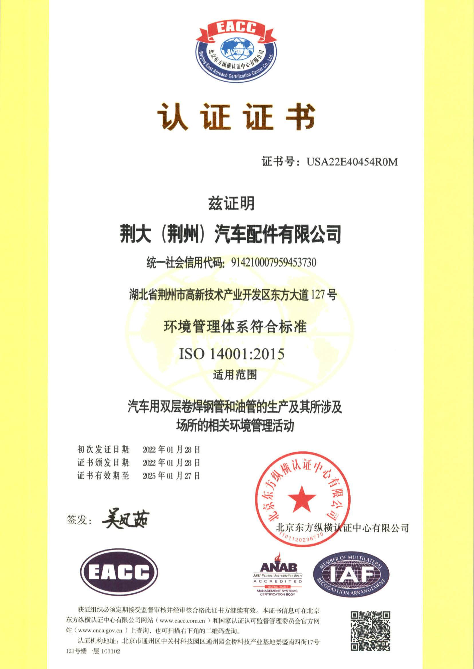 环境管理体系证书